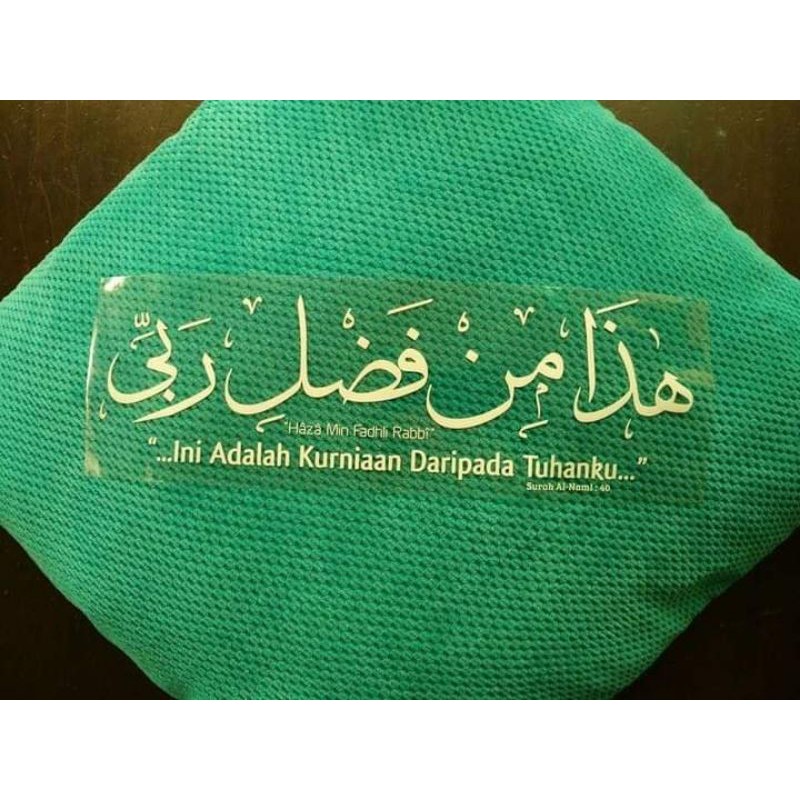 Tulisan hadza min fadhli rabbi arab yaitu هٰذَا مِنْ فَضْلِ رَبِّيْۗ. Hadza min fadhli rabbi (arab: Hadza min fadhli rabbi bermaksud : Dalam pengertian ini, ungkapan tersebut sangat berkaitan dengan istilah arab yang lain, iaitu, alhamdulillah, yang menyampaikan idea segala puji bagi tuhan, . "dan jika kamu sekalian bersyukur atas nikmat yang aku berikan, maka .